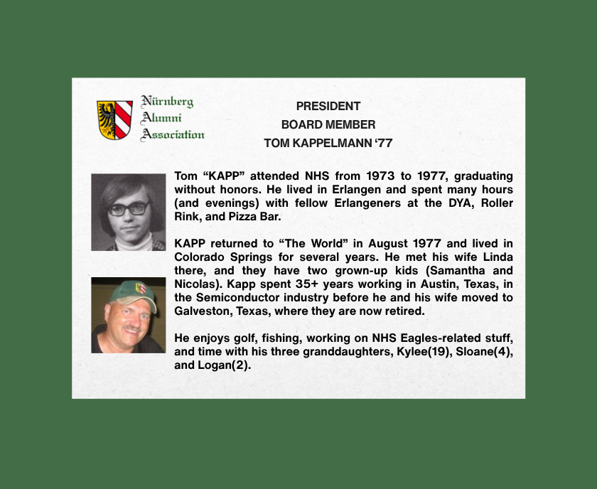 We are the official alumni association of NÜRNBERG AMERICAN HIGH SCHOOL