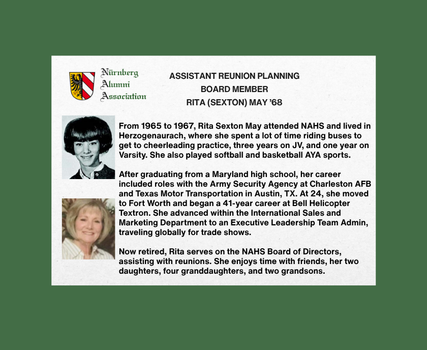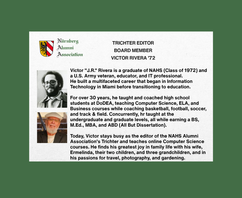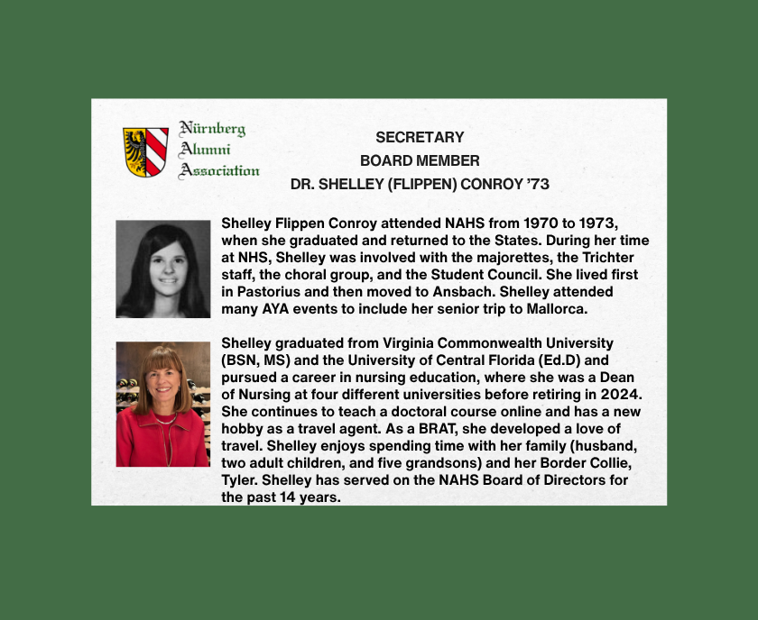 As we prepare the upcoming Spring Edition of the Trichter, we want to dedicate a special tribute to her memory and her legacy at Nürnberg American High School. Our deadline to receive your comments is March 15, 2026.